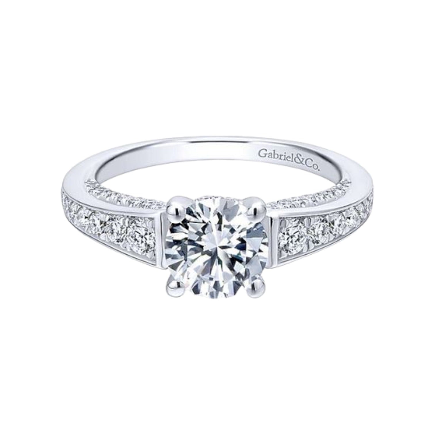 Timeless elegance meets modern brilliance in this beautifully crafted cathedral-style engagement ring. Crafted from shining 14 karat white gold, this setting is designed to hold a 1-carat round center diamond (sold separately), elevating it with graceful arches for a sophisticated and classic look.