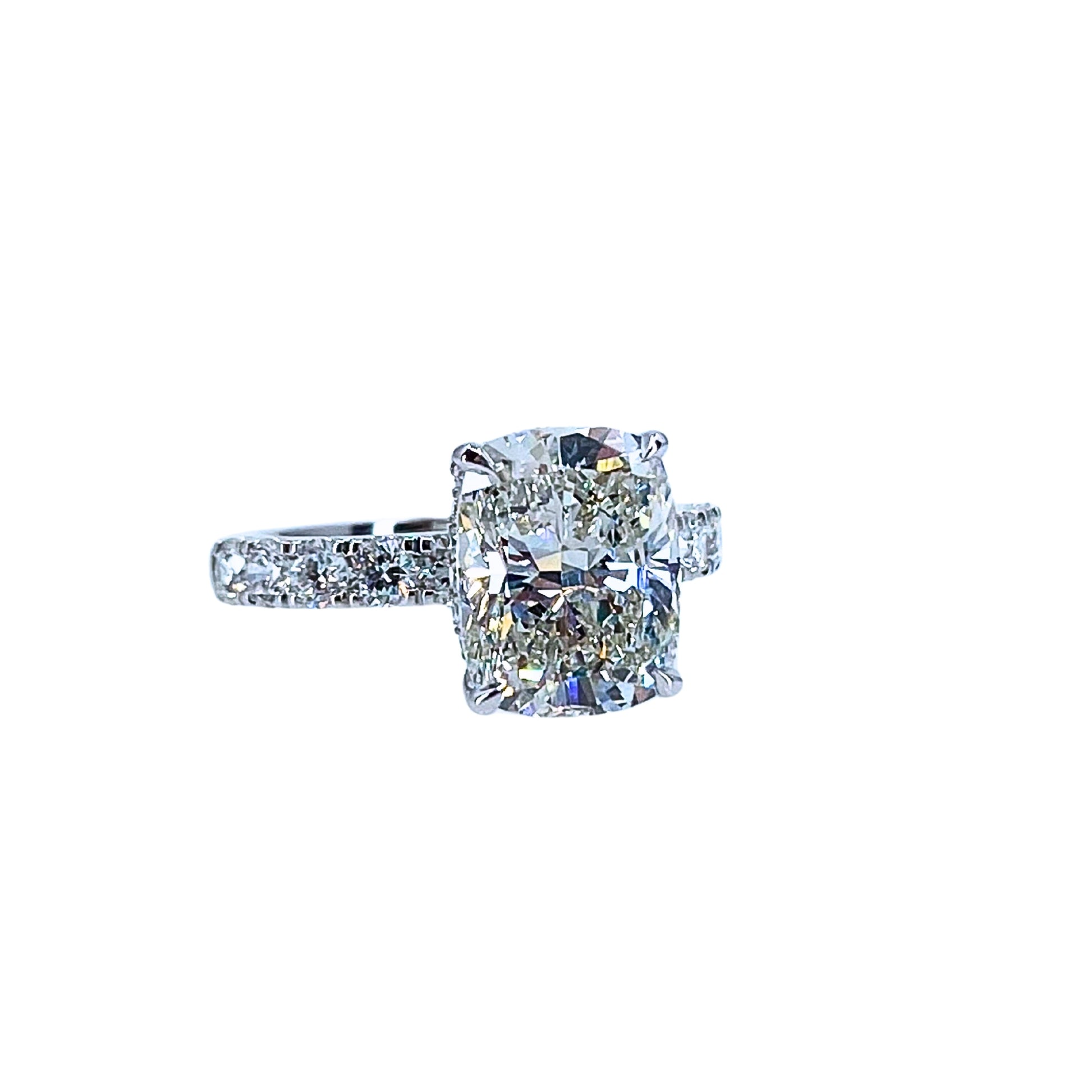 • 1 cushion cut F VS1 diamond totaling 4.09 carats