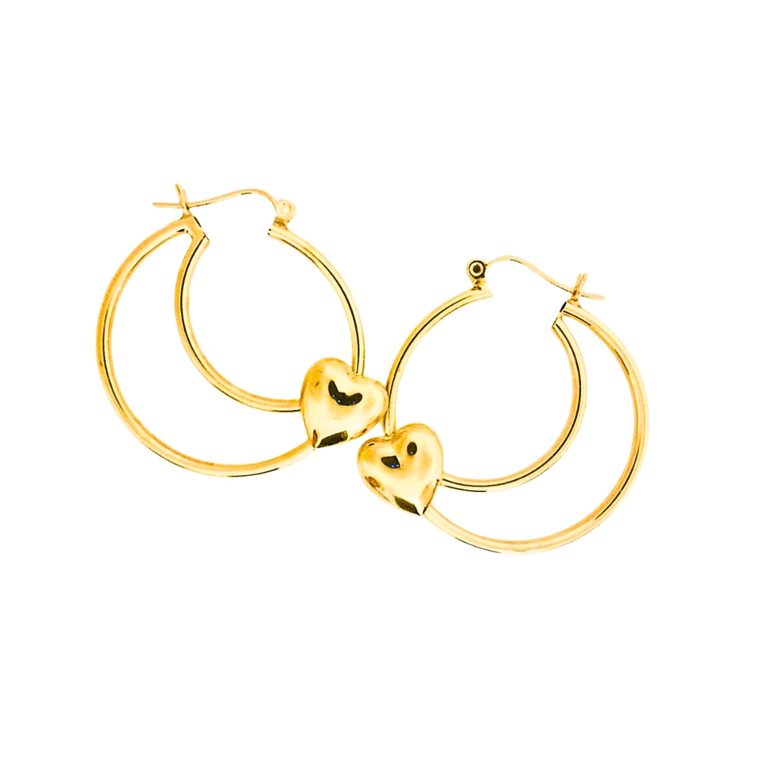 Yellow Gold Double Hoops With Heart