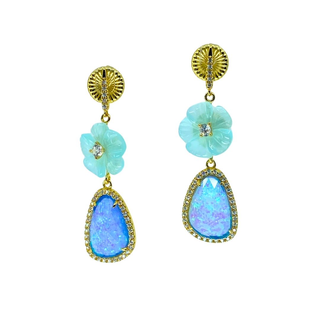 Bring a pop of color to any outfit with these stunning drop earrings! The crystal flower and design with lab created opals provide a delicate and elegant touch, while the cz stones add a subtle sparkle.