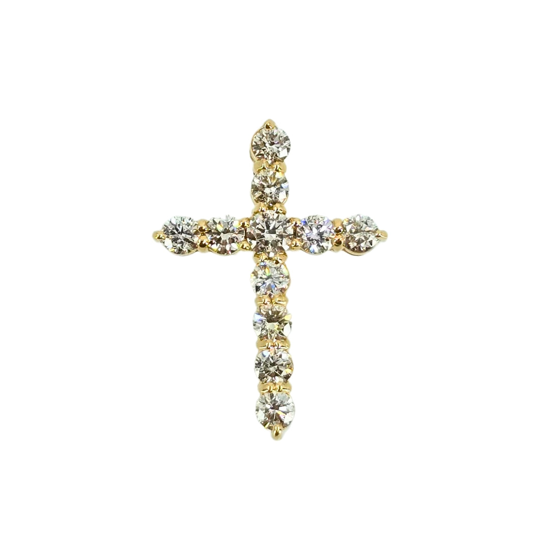 Yellow Gold Shared Prong Diamond Cross Pendant