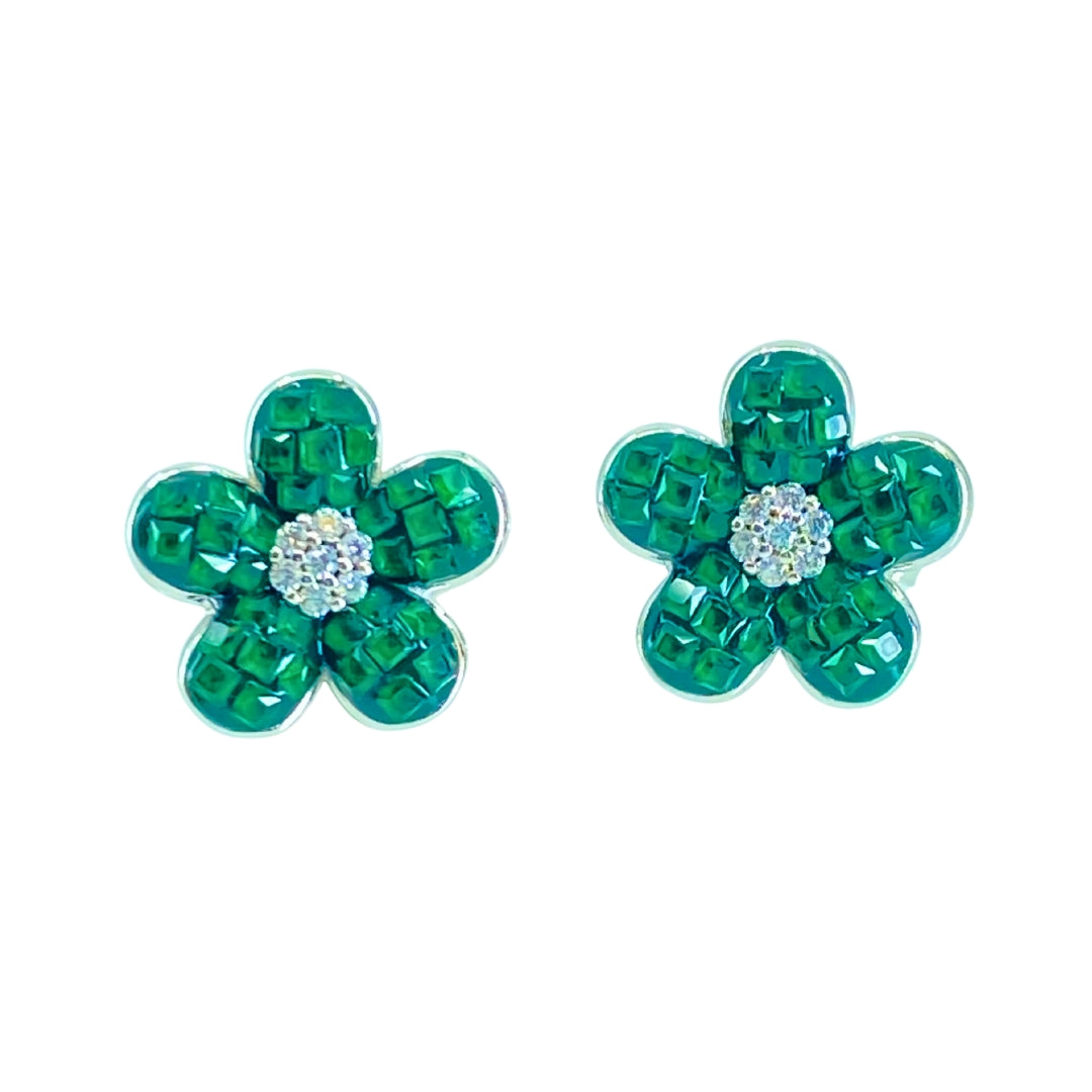 Elevate your style with these stunning sterling silver earrings adorned with dazzling green and white crystals. Crafted with precision, the delicate floral design exudes elegance, while the shimmering crystals add a touch of sophistication. The sterling silver base ensures durability and a radiant finish, making these earrings perfect for both everyday wear and special occasions.