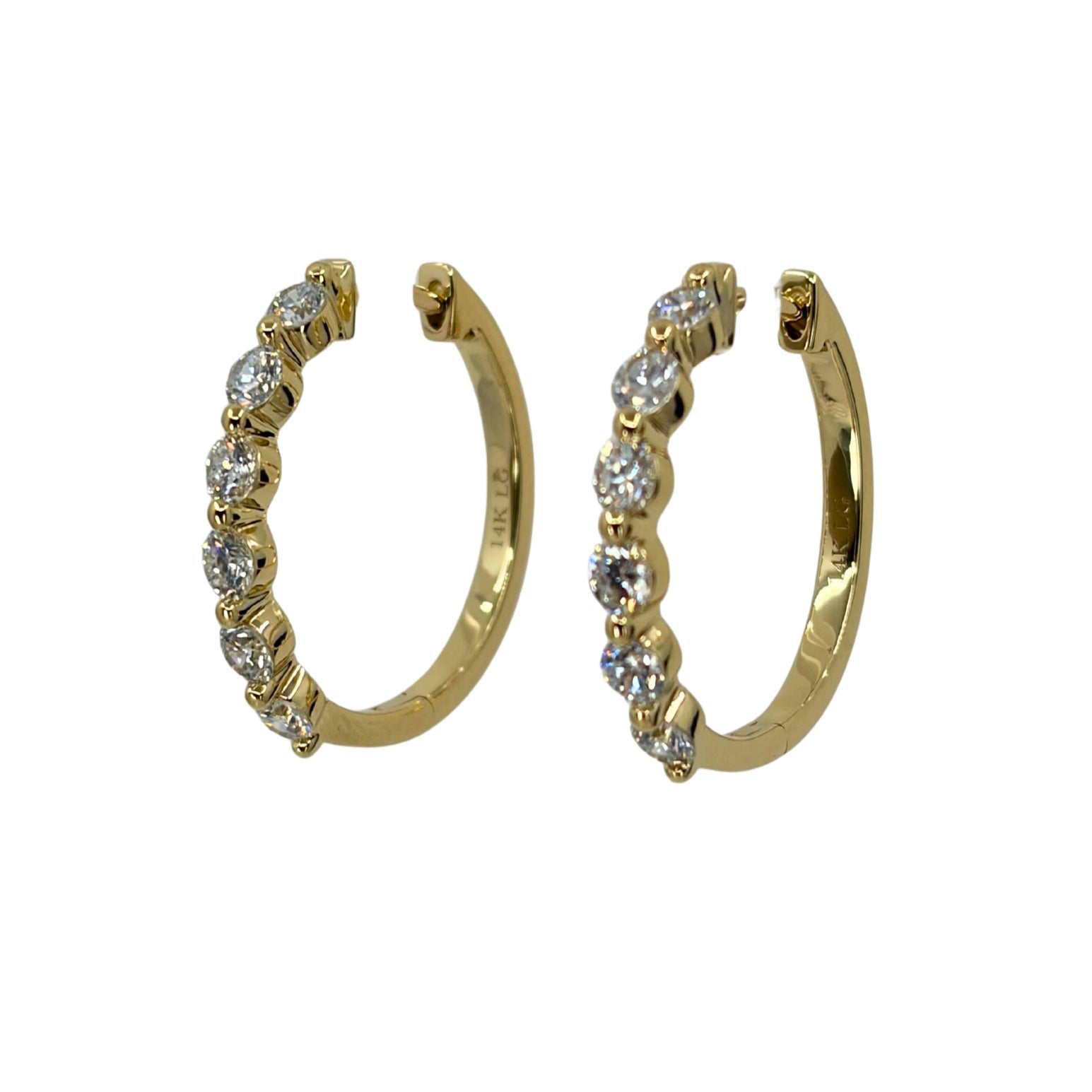 Yellow 14 Karat Medium Hoop Lab Grown Diamond Earrings With 12 = 1.01Tw Round F/G Si1 Diamonds