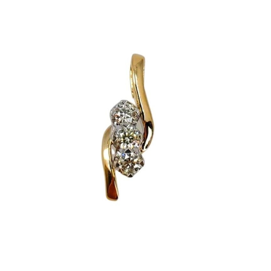 This elegant pendant features three stunning diamonds, symbolizing the past, present, and future. Crafted in two-tone 14 karat gold, it offers a unique and timeless look. The round diamonds have a total weight of 0.50 carats, and a color grade of K/L color and a clarity grade of Si2.