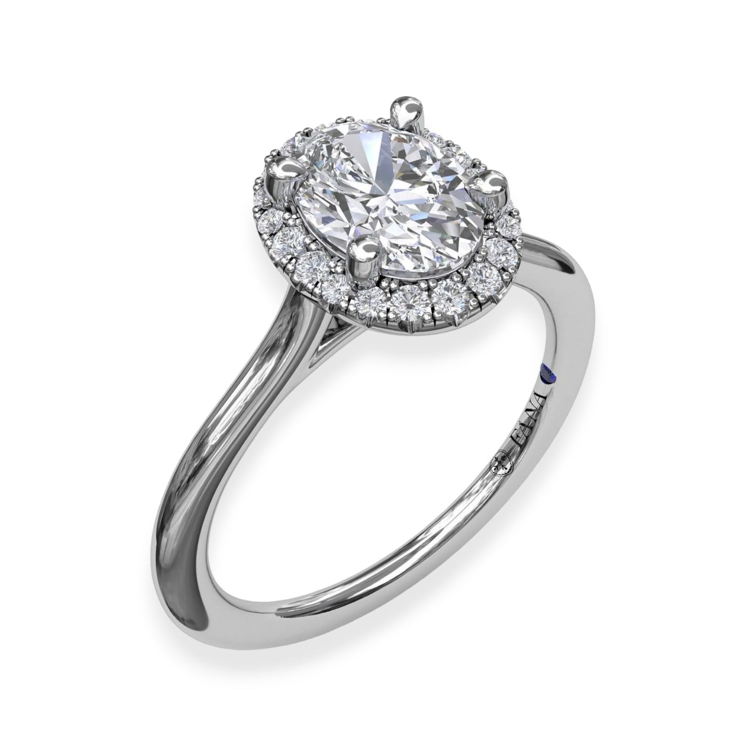 Delicate and timeless, this halo engagement ring is crafted in polished 14 karat white gold for a sleek, luminous finish. Featuring 0.16 total carats of sparkling round diamonds, the halo design enhances the center setting with added brilliance and elegance. Perfect for those who love subtle sparkle with a classic touch, this ring is a graceful symbol of enduring love.