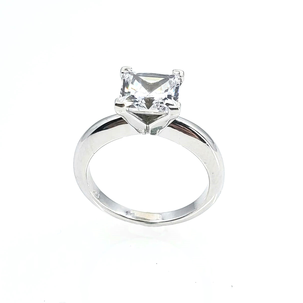 This 2.5 carat princess cut cubic zirconia ring offers exceptional sparkle and shine in a beautiful 14 karat white gold setting. Its dazzling princess cut is sure to captivate. Perfect for special occasions or to treat yourself, this exquisite ring will bring a touch of glamor to your look!