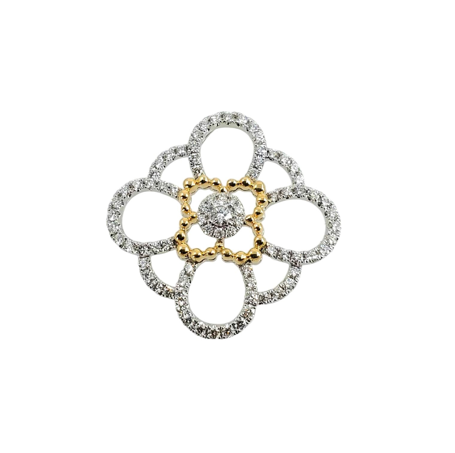 Add a touch of whimsy to your jewelry collection with this dazzling two tone flower pendant! Crafted from two tone 14 karat gold and adorned with 79 sparkling round H color SI2 clarity diamonds, this pendant is a playful yet elegant addition to any outfit.