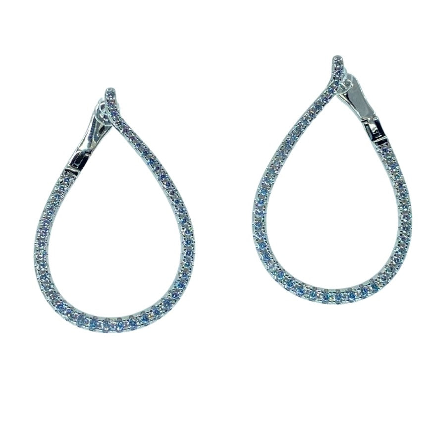 Crafted from lustrous white sterling silver, these loop earrings feature dazzling white cz stones that add a touch of elegance to any outfit. Perfect for any occasion, these earrings are a must-have for every jewelry collection!