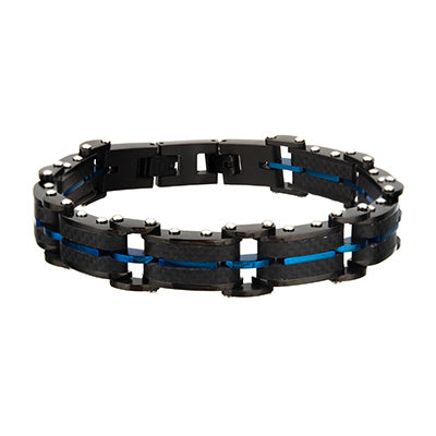 Black Carbon Fiber and Blue IP Link Stainless Steel Bracelet