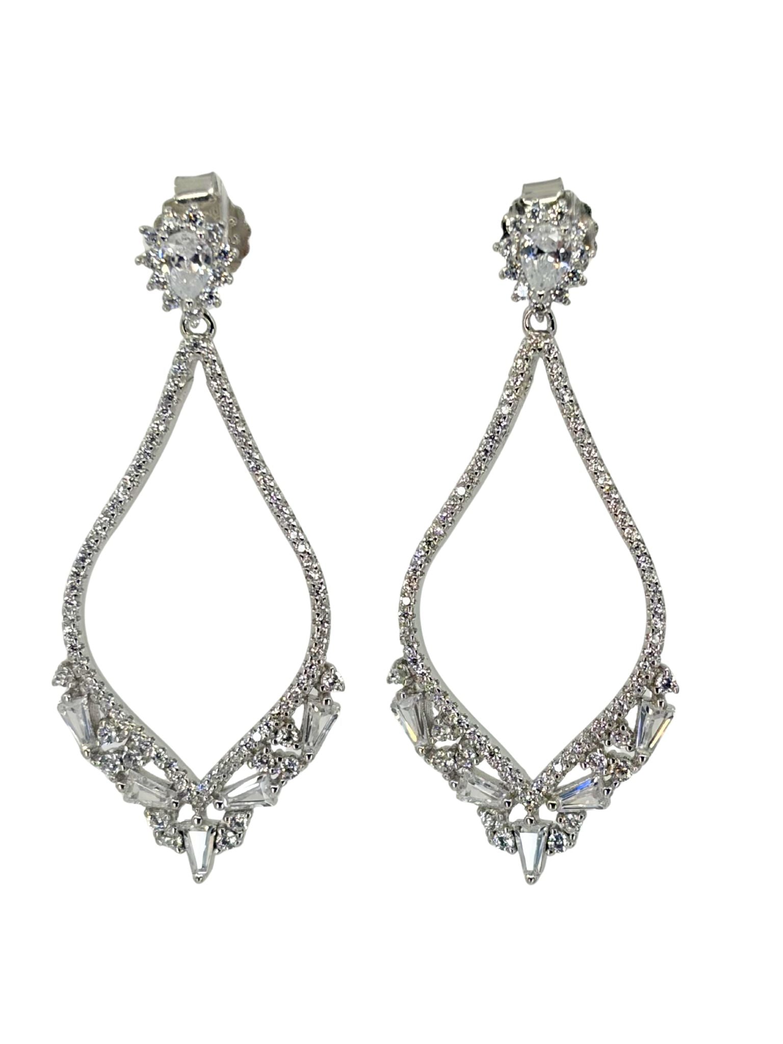 White Sterling Silver Drop With Cz's Earring