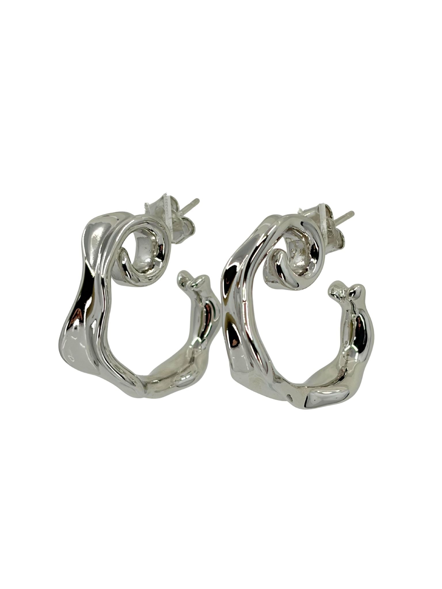 Yellow Sterling Silver Geometric Hoop Post Earrings
