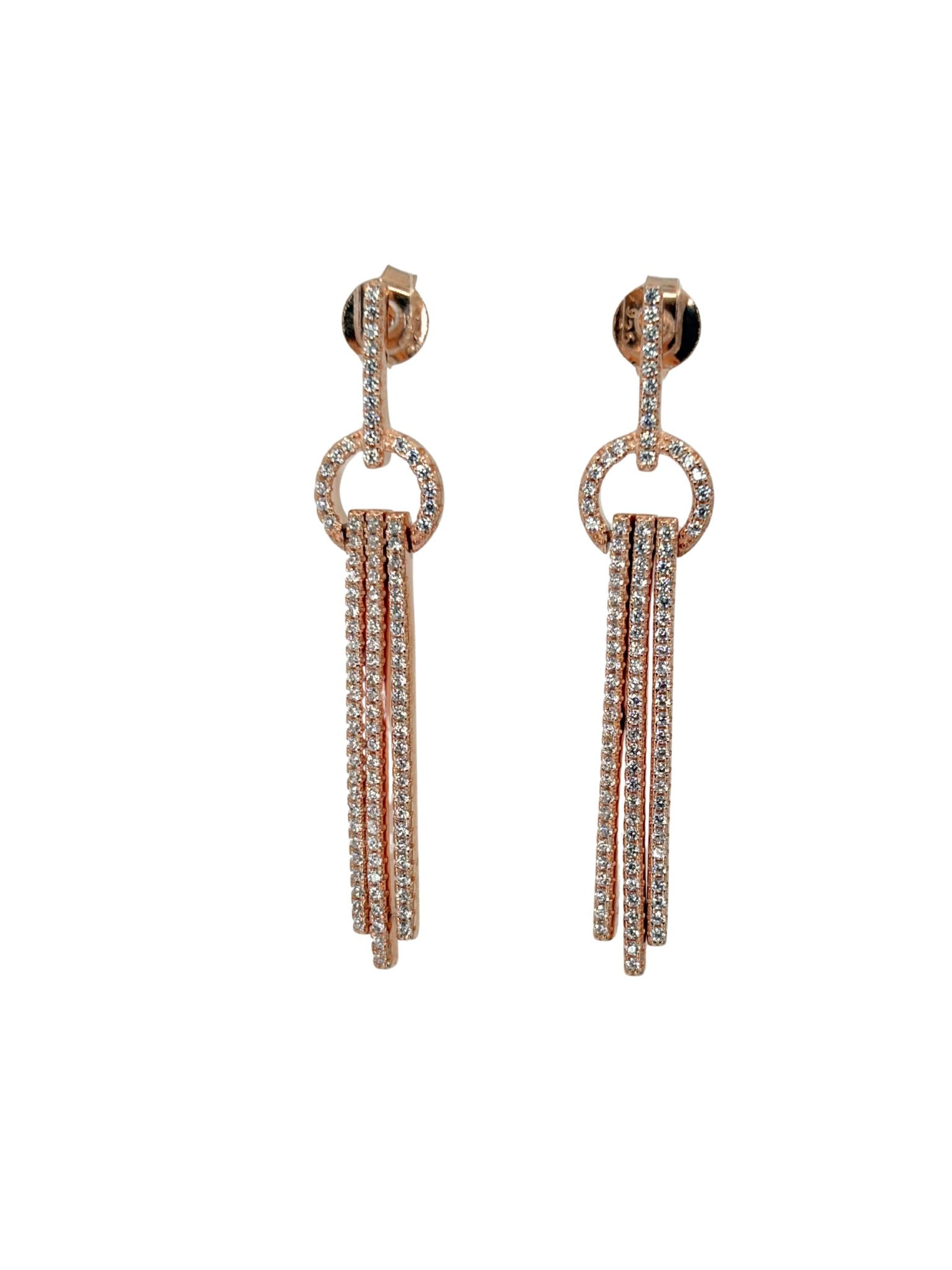 Rose Sterling Silver Drop Earring With Cz's