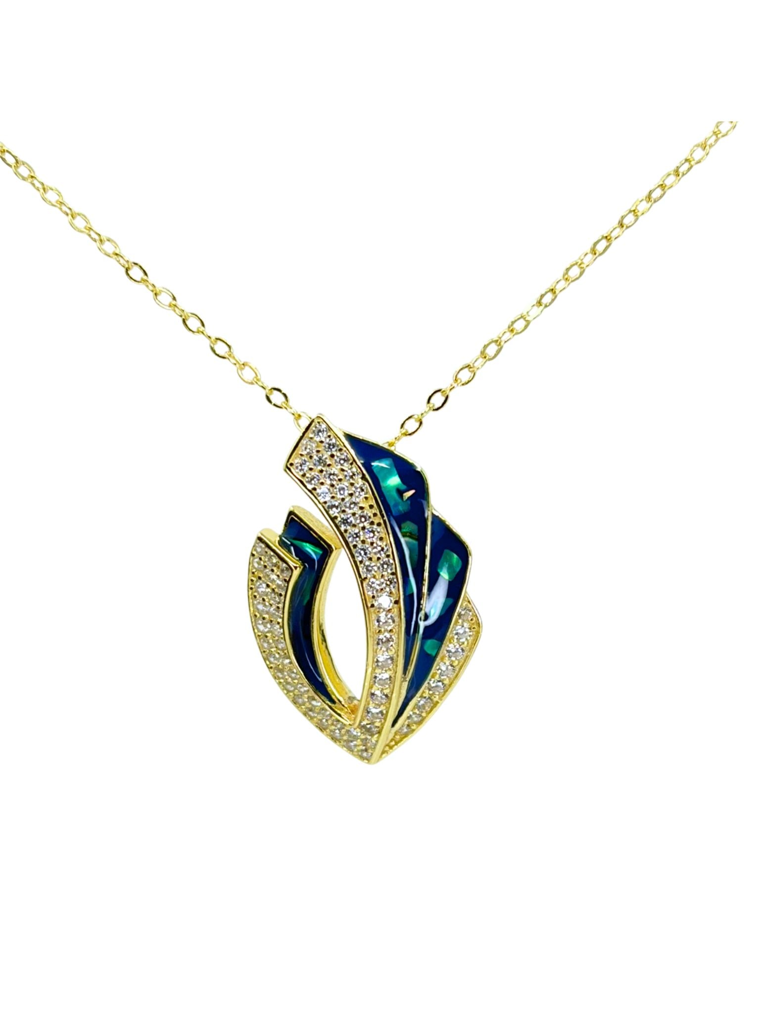 Yellow Sterling Silver Blue Abalone and CZ's Drop Necklace adjustable 16-18"