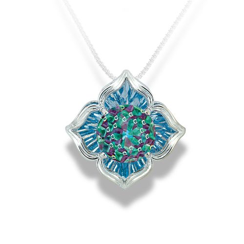 White Gold Blue Topaz Free Form Pendant