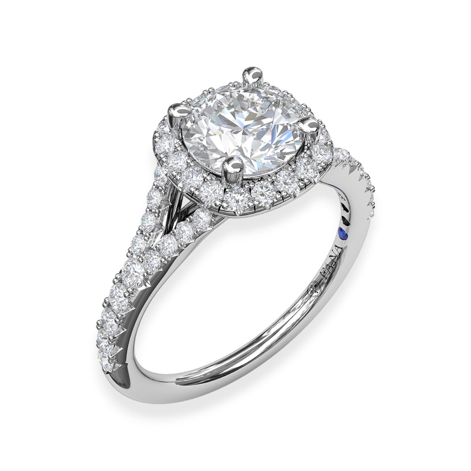 Designed to hold your choice of center stone, the halo setting enhances the stone's appearance and sparkle, creating a truly captivating look. This elegant design is perfect for the bride who loves refined beauty with a touch of glamour.