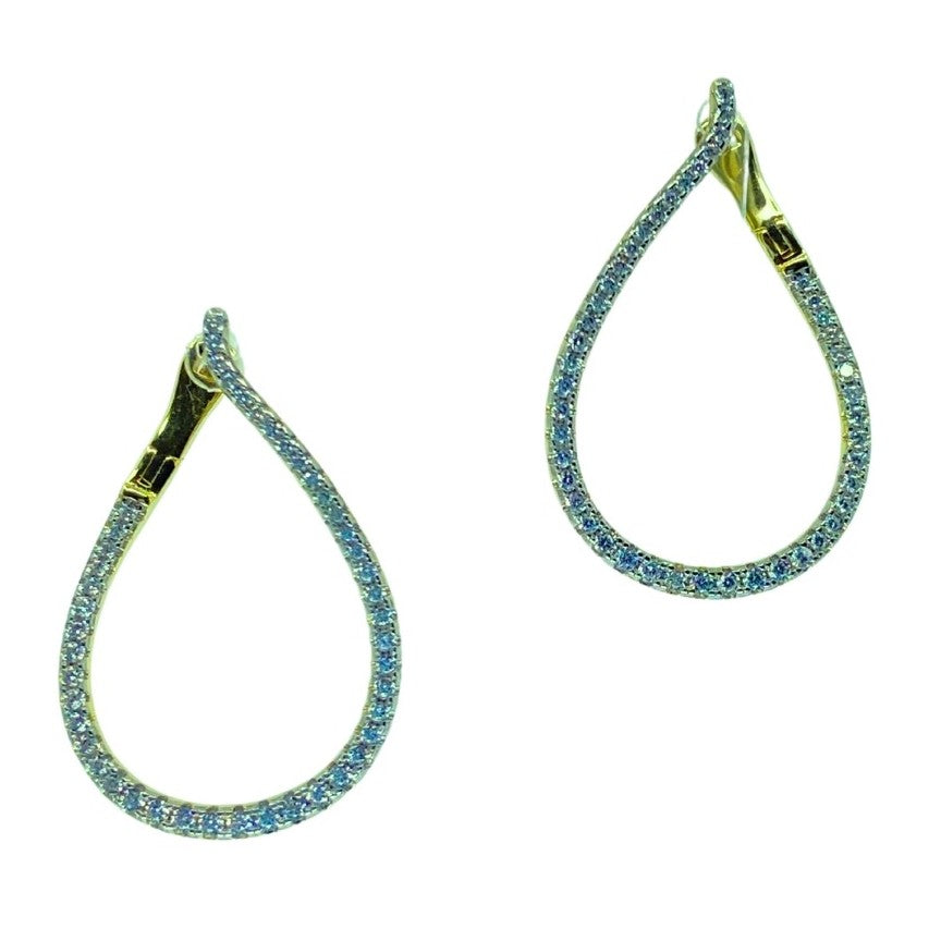 These dazzling earrings feature a sleek, yellow-toned sterling silver loop design, exuding a warm and luxurious charm. Adorning the loop are dazzling white cz stones, carefully embedded to catch light beautifully and add brilliance to its design. Ideal for both daily wear and special occasions, these earrings strike the perfect balance between timeless style and modern flair.